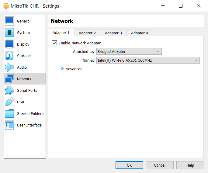 - Adapter 1: Enable the network adapter and attach it to Bridged Adapter or NAT (depending on your network setup).
