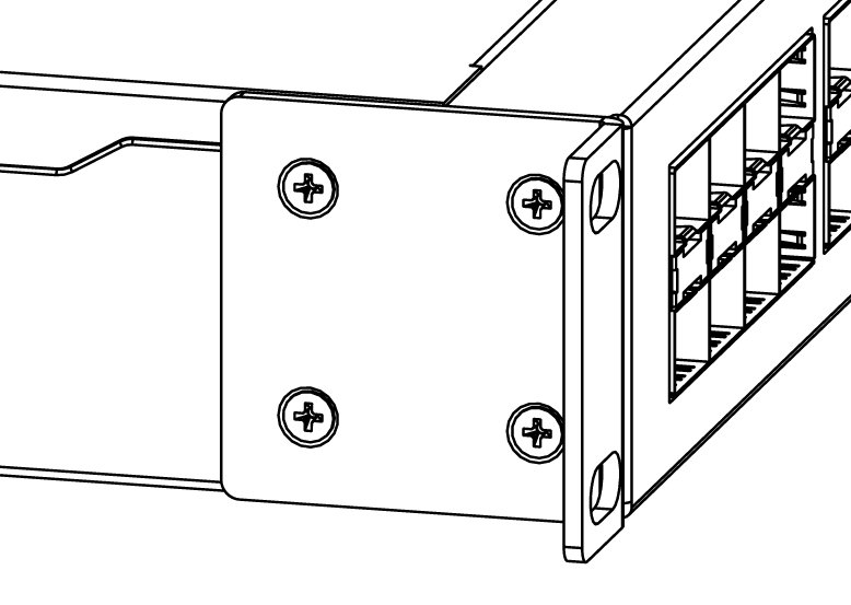 - Attach rack ears to both sides of the device and tighten four screws to secure them in place, as shown in the picture.
