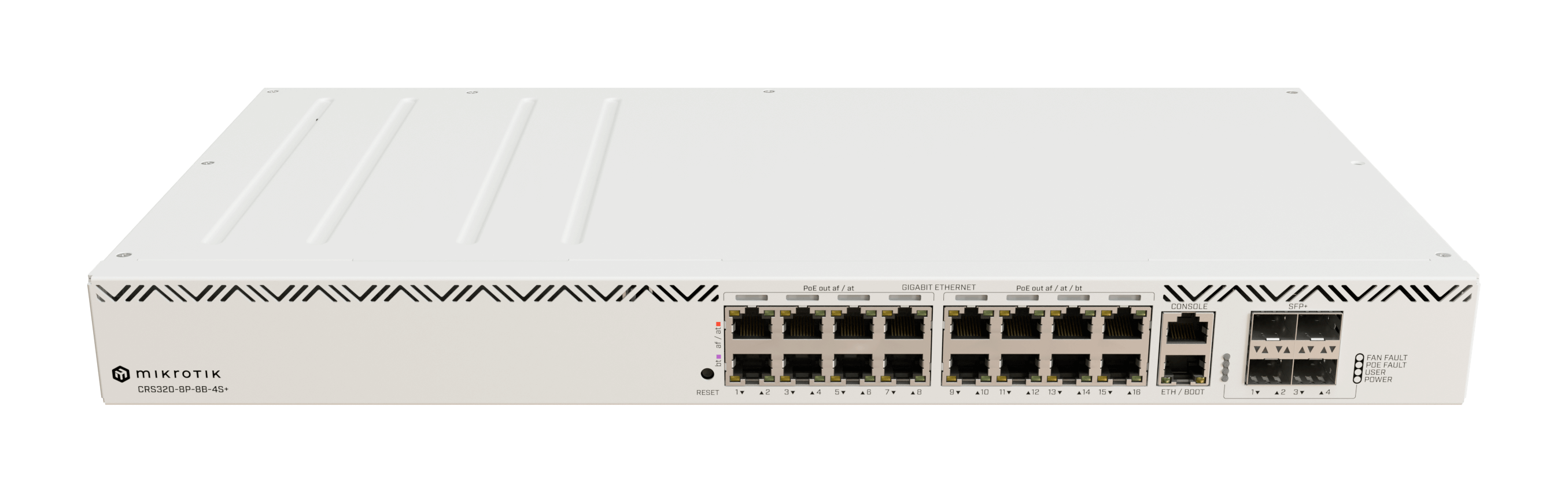 Unlike our previous 802.3 af/at Power Sourcing Equipment, this is our first PoE switch with full implementation of the 802.3 af/at/bt standard. It supports only fully compliant 802.3 af/at/bt Powered Devices, such as CRS510-8XS-2XQ-IN, CRS504-4XQ-IN, CRS504-4XQ-OUT, FTC11XG, mAP lite, RB1100AHx4 and future models.