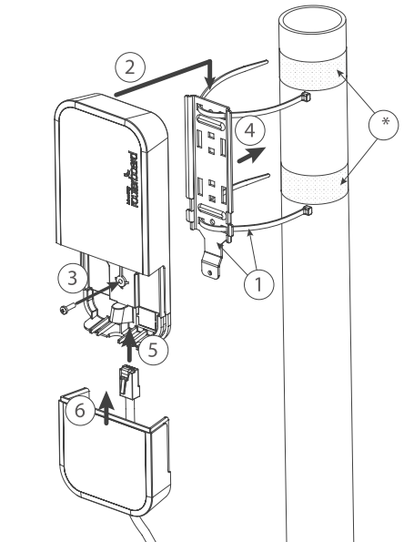 It's recommended to secure Ethernet cable to the pole using zip ties. With the distance from the device approximately 30 cm.