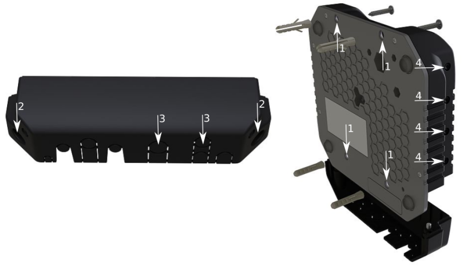 - When using external antennas, connectors can be attached on the case sides, to make openings use a 6.5 mm drill bit, please see LtAP kit-series#Mounting section part 4;
