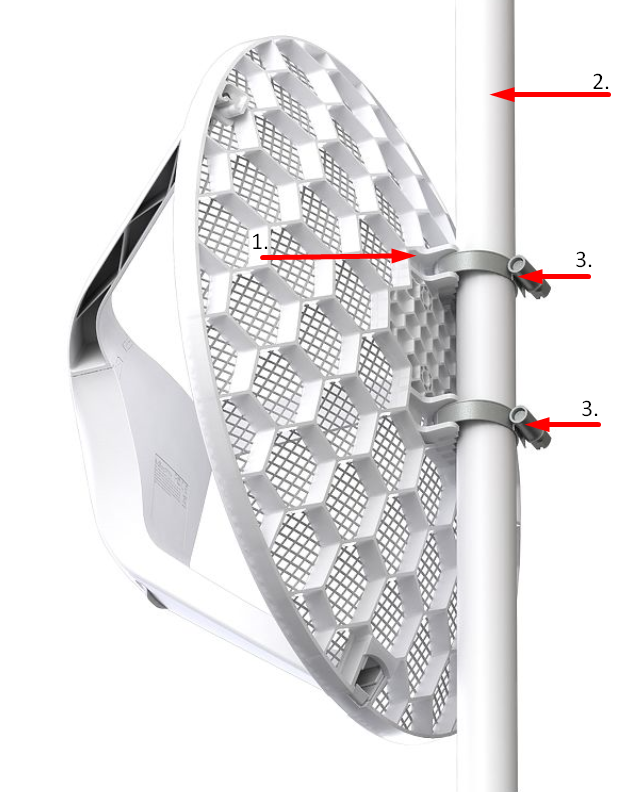 The device is designed to be mounted on the pole using zip ties or steel clamps as shown in the picture. The clamping diameter with provided steel clamps is 35 – 70 mm.