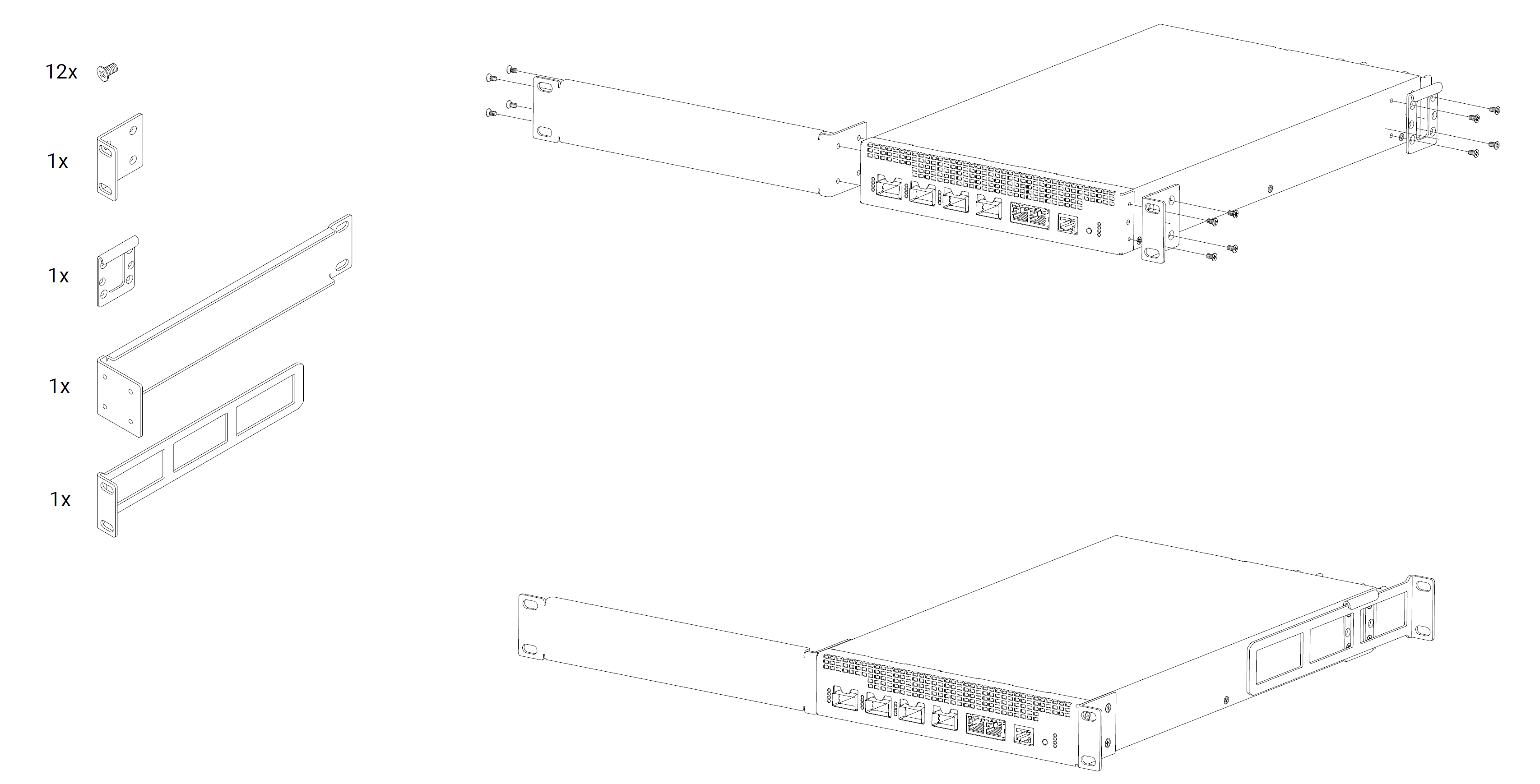 Using the RMK-2x10/19 kit (included in the package), it is possible to mount two CRS804-4DDQ-hRM devices side by side within a single 1U rack unit.
